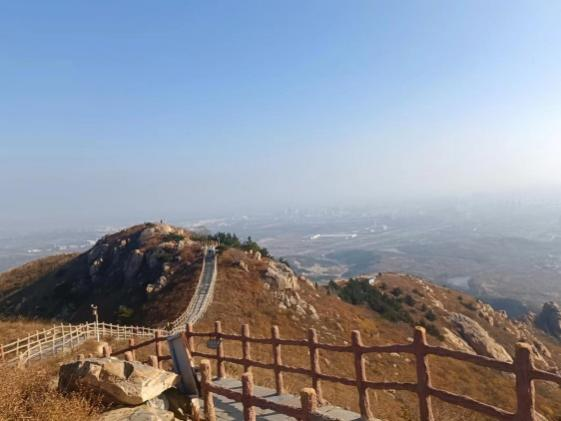 磁山海拔雖不算高,但氣勢(shì)美景絲毫不遜色。登至山頂,放眼眺望,秋色盡收眼底,頭頂是天空那純凈的藍(lán)色,周圍城市全景盡收眼底,高樓鱗次櫛比,道路縱橫交錯(cuò),綠毯似的田園溝壑和炊煙裊裊的村莊都披上了一層銀紗,一切都在腳下。大家都深深陶醉于眼前的美景,看著這萬(wàn)千景象,心中頓然升起一種“會(huì)當(dāng)凌絕頂,一覽眾山小”的豪氣。